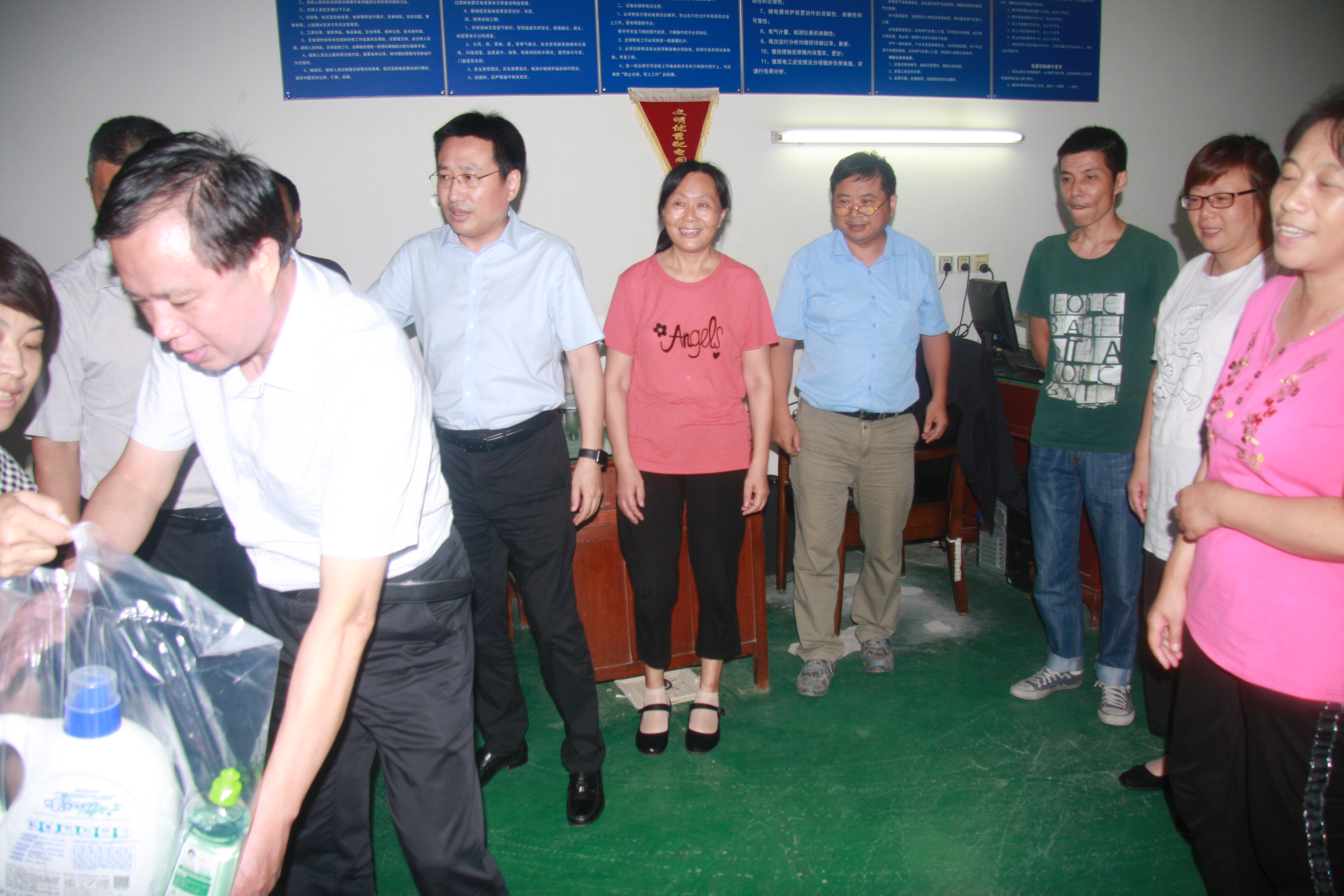 慰問組一行先后到江山農(nóng)化生產(chǎn)車間、興盛木業(yè)制造廠房、以及公司管理的三個(gè)園區(qū):軟件園、飛越百度文化廣場(chǎng)、石化園區(qū),分別給一線生產(chǎn)車間職工、園區(qū)一線工作人員送去防暑用品,并詳細(xì)了解了一線職工工作環(huán)境和生活情況,對(duì)他們辛勤的付出表示感謝,叮囑大家在做好工作的同時(shí),一定要注意防暑,確保安全,保重身體。