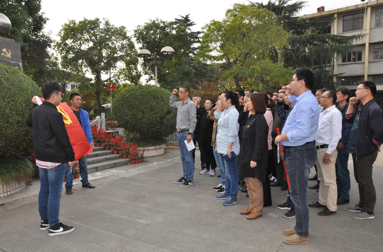 來到南通獨(dú)立支部紀(jì)念地碑前,在大生集團(tuán)有限公司副董事長、總會(huì)計(jì)師漆穎斌的熱情接待下,紡織染公司全體黨員聆聽了黨辦潘宇關(guān)于獨(dú)立支部光榮歷史的講解,對其成立的過程,最初成員,以及偉大意義和作用都有了更為深刻地認(rèn)識和理解。作為南通最早的黨組織,中共南通獨(dú)立支部的成立點(diǎn)燃了江海大地第一簇革命星火,掀開了南通革命史上嶄新的一頁。 瞻仰紀(jì)念碑,紡織染黨委書記、董事長李志宏帶領(lǐng)全體黨員干部莊嚴(yán)地舉起右手,在中國共產(chǎn)黨南通支部紀(jì)念碑前,面對火紅的黨旗,重溫入黨誓詞,緬懷革命先輩光榮歷史,深刻感受他們在革命歲月里,不忘初心,牢記使命,創(chuàng)獨(dú)立支部、干經(jīng)天偉業(yè)的壯志豪情;感受他們?yōu)橹袊嗣裰\幸福,為中華民族謀復(fù)興的艱苦卓越歷程。