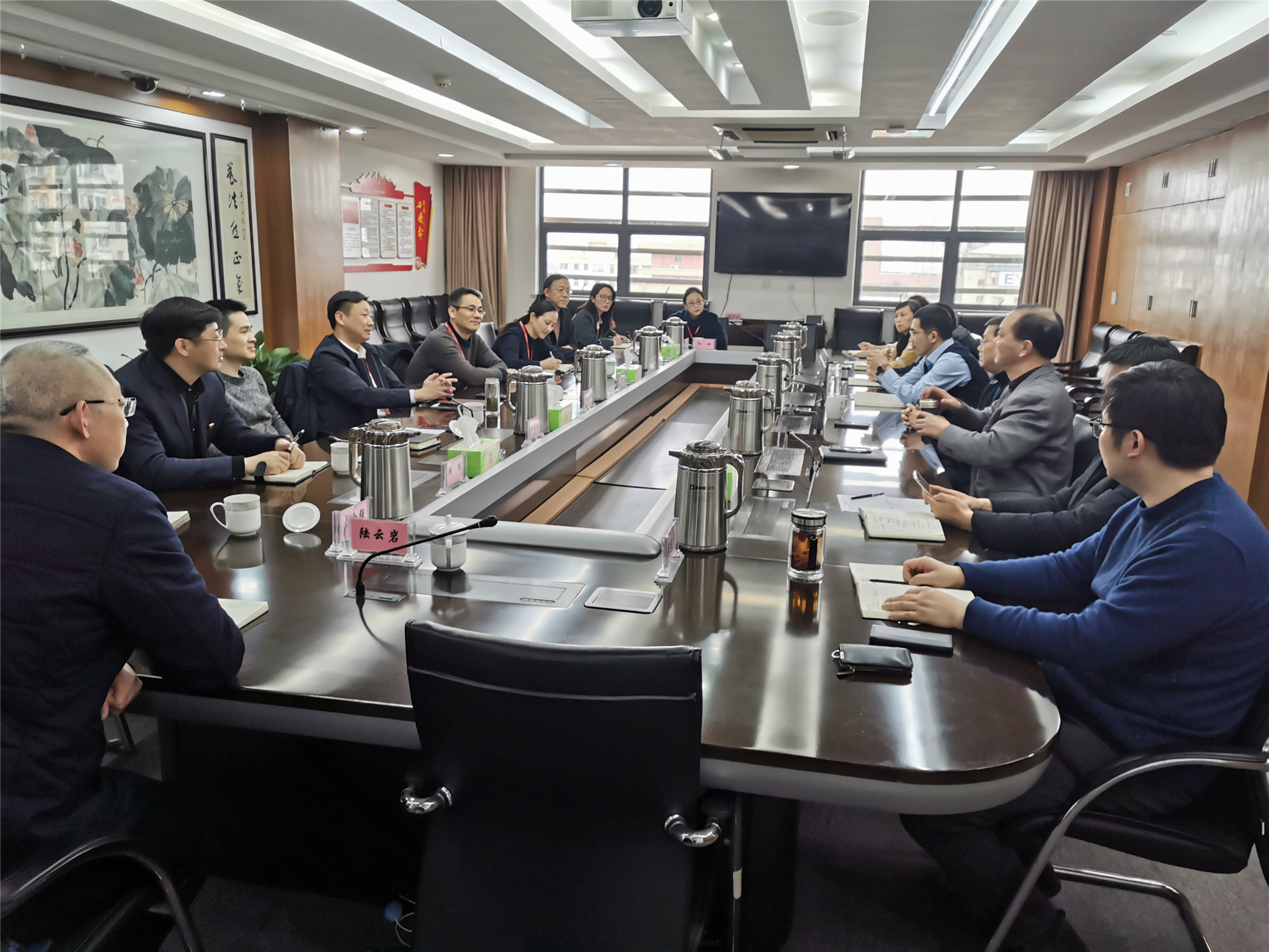 226日下午,南通軌道交通有限公司黨委書記、董事長王智帶領(lǐng)相關(guān)人員來產(chǎn)控集團(tuán)交流。產(chǎn)控集團(tuán)黨委書記、董事長張劍橋,總經(jīng)理顧建國等領(lǐng)導(dǎo)及相關(guān)部門負(fù)責(zé)人參加了座談會(huì)。