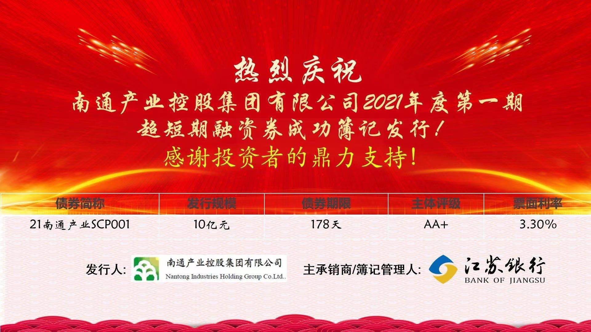20212 22 產(chǎn)控集團成功發(fā)行10億元超短期融資券。產(chǎn)控集團的良好資質得到投資者的認可,10億元資金于下午已滿額募集到位,最終簿記倍數(shù)1.43,票面利率3.3%,比當日估值40BP。