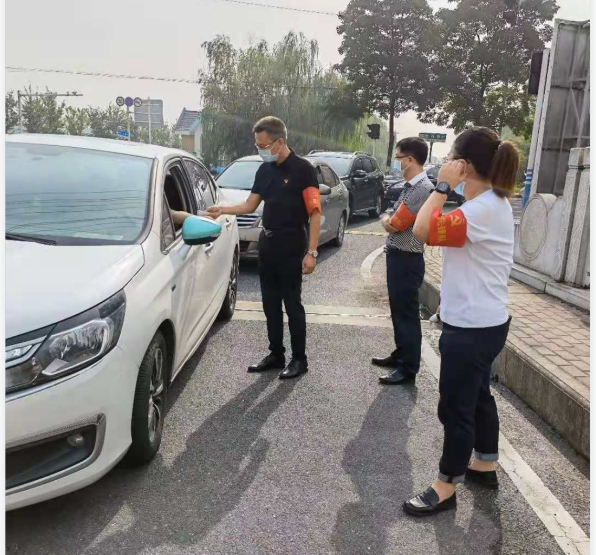 園區(qū)防疫是阻斷疫情傳播最基礎(chǔ)、最關(guān)鍵的環(huán)節(jié)。由于入駐企業(yè)較多,當前智匯產(chǎn)業(yè)園門崗排查任務重,特別是早高峰時段,車輛人員集中,導致通行不暢。為積極投身園區(qū)疫情防控工作,國盛黨支部主動聯(lián)系園區(qū),組織黨員先鋒隊和青年突擊隊分別于8月26日和27日連續(xù)兩天開展防疫志愿活動。早上八點,黨員和青年志愿者們佩戴紅袖章,為進入園區(qū)的人員測量體溫并檢查行程信息、講解防疫知識,讓群眾從思想上重視、行動上配合,牢記勤洗手、戴口罩、常消毒的防疫要點。