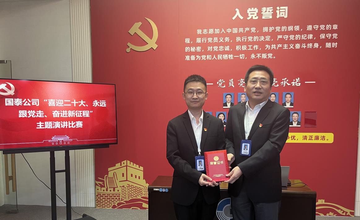 “今日云景好,水綠秋山明?!苯鹎飼r節(jié),為迎接黨的二十大順利召開,抒發(fā)青年干部對黨的真摯情感,展現(xiàn)青年干部新時代精神風(fēng)貌,國泰公司于2022年10月8日舉辦了“喜迎二十大、永遠(yuǎn)跟黨走、奮進(jìn)新征程”主題演講比賽。