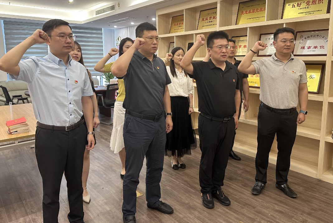 為有形有感增強(qiáng)廉潔教育的牽引力和感召力,進(jìn)一步強(qiáng)化黨員干部廉潔自律意識和拒腐防變能力,7月24日下午,國潤租賃黨支部開展“政治生日憶初心 清正廉潔擔(dān)使命”主題黨日活動(dòng),黨支部書記陳大鵬帶領(lǐng)全體黨員重溫入黨誓詞,黨員們面對黨旗,緊握右拳,莊嚴(yán)宣誓,4名黨員同志圍繞入黨經(jīng)歷、工作經(jīng)歷和成長經(jīng)歷等暢談“政治生日”感言,回顧入黨初心。