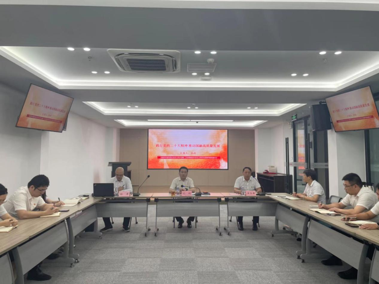 隨后,國融公司黨委委員、副總經理孫濤以《踐行黨的二十大精神 推動國融高質量發(fā)展》為題,帶領公司黨員一起學習黨的二十大報告精髓,結合公司實際,從三方面與大家分享自己學習黨的二十大精神的體會與收獲,積極引導黨員干部堅持學習、堅定信心、奮勇前行,攜手共譜國融公司新篇章。
