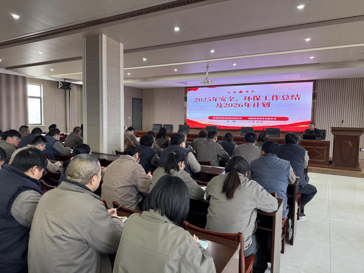 1月8日下午,精華制藥、南通森萱召開2025年度安全環(huán)保工作總結(jié)暨2026年安全環(huán)保工作計(jì)劃會議,公司經(jīng)營層、各部門(車間)負(fù)責(zé)人、主管及安全員參會。